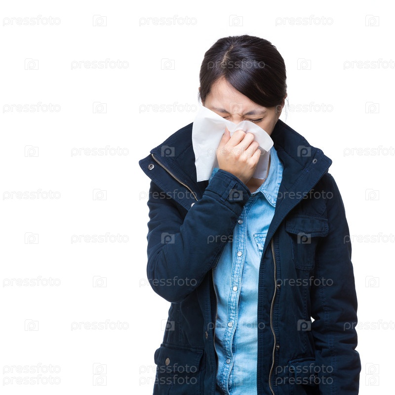 Азиатская женщина чихает