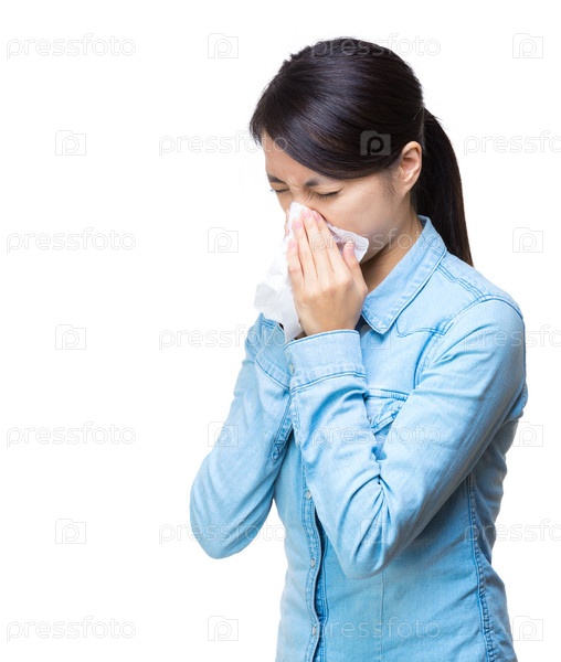 Азиатская женщина чихает