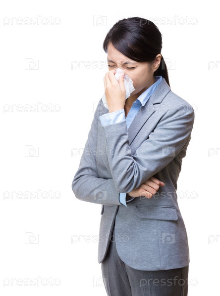 Азиатская деловая женщина чихает