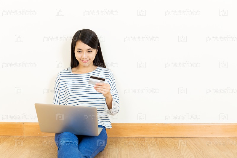 Азиатская женщина совершает покупки онлайн