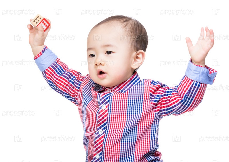 Азиатский мальчик держит игрушку в поднятых руках