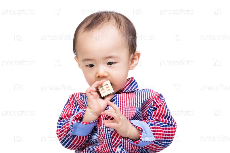 Азиатский мальчик кусает кубик