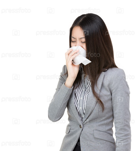 Азиатская деловая женщина чихает