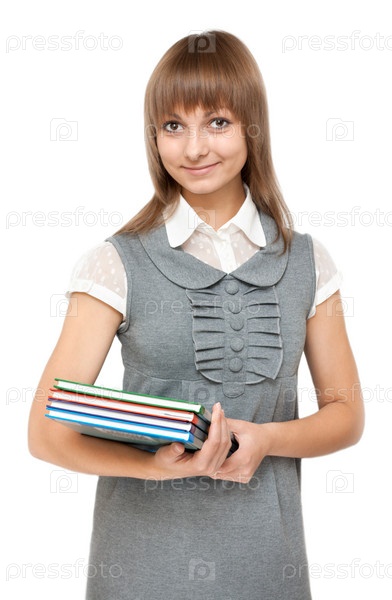 Молодая девушка с книгой в руке на белом фоне