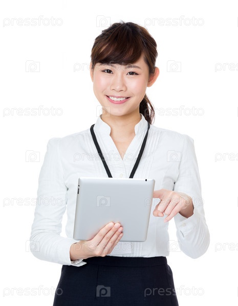 Азиатская деловая женщина с планшетным компьютером
