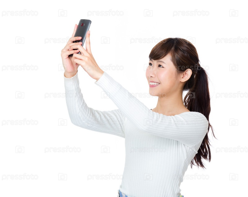 Азиатская женщина фотографирует себя