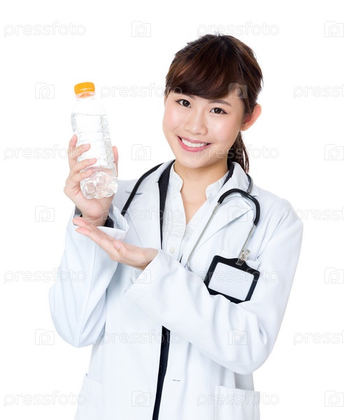 Азиатская женщина-врач с бутылкой воды