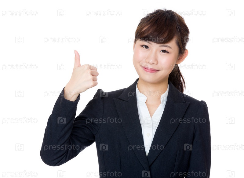 Азиатская деловая женщина показывает палец вверх