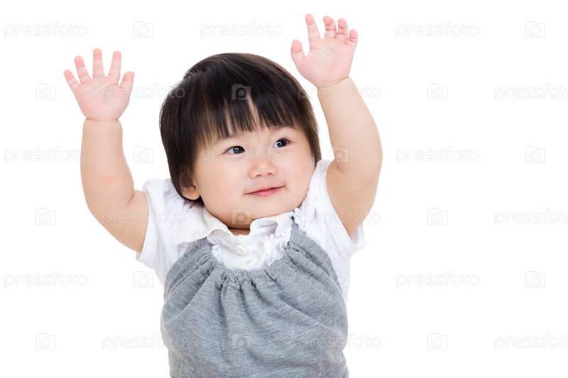 Азиатская девочка с поднятыми вверх руками