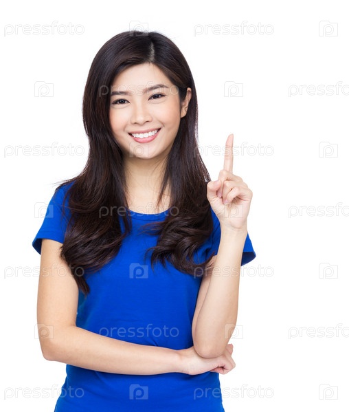 Азиатская женщина указывает пальцем вверх