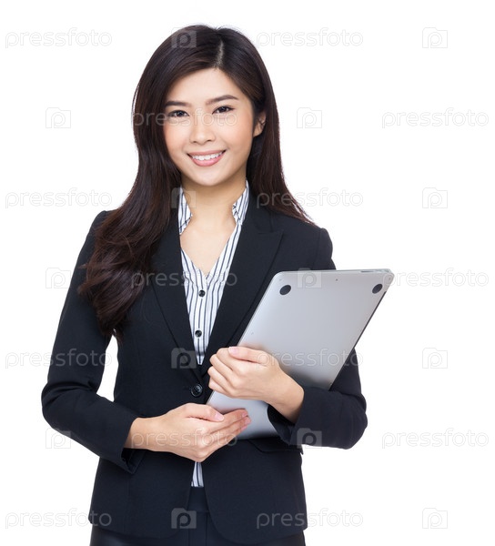 Азиатская деловая женщина с ноутбуком