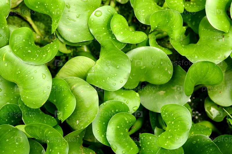 Капли воды на зеленых листьях