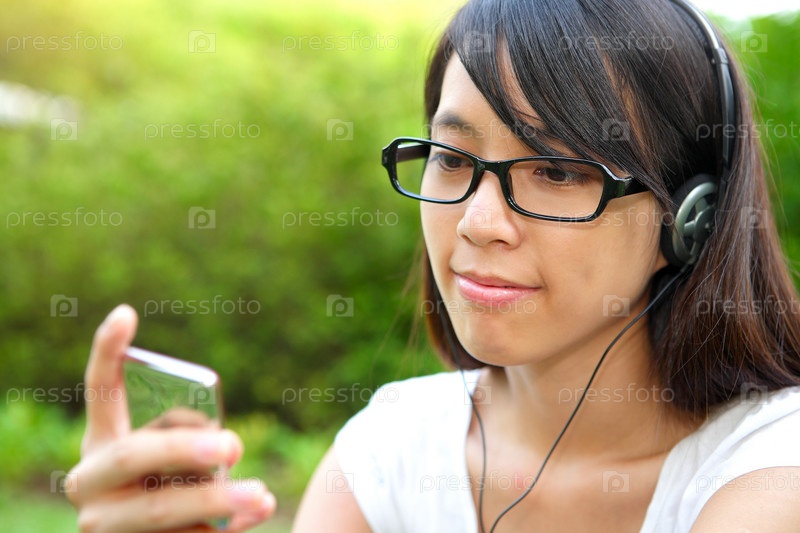 Хорошенькая девушка слушает музыку