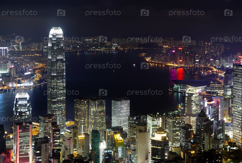 Город Гонконг ночью