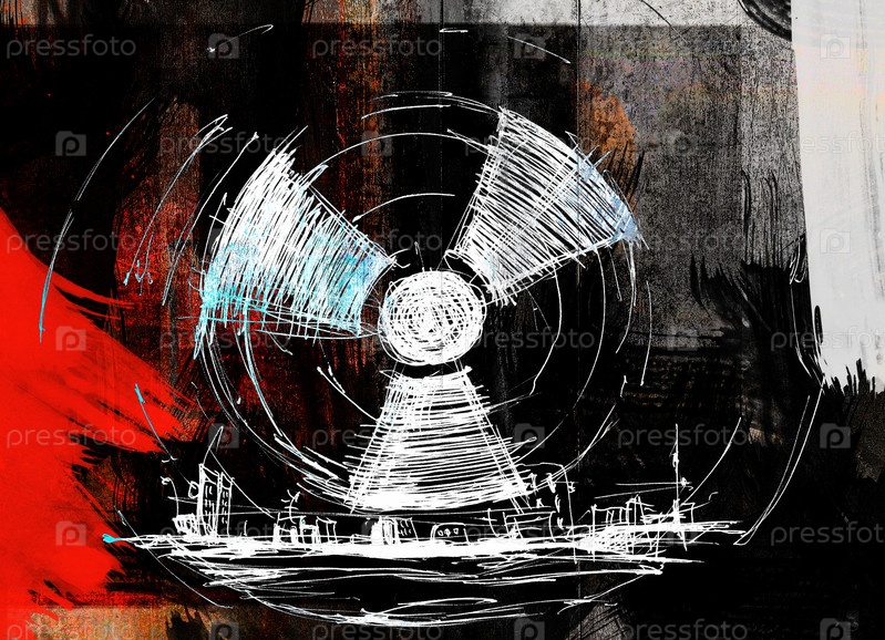 Знак "Осторожно, радиация!", нарисованный тушью