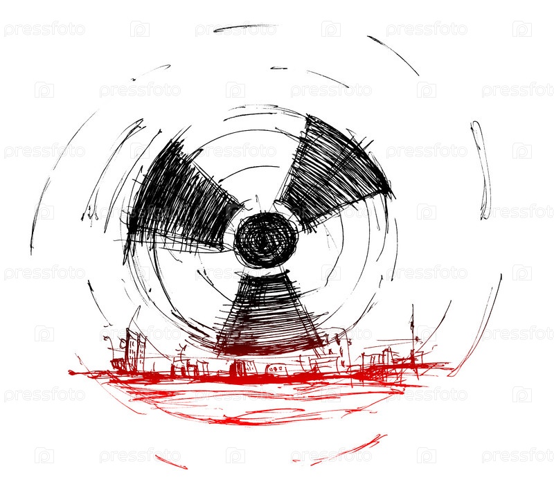 Знак "Осторожно, радиация!", нарисованный тушью