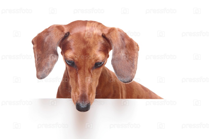 Такса смотрит вниз
