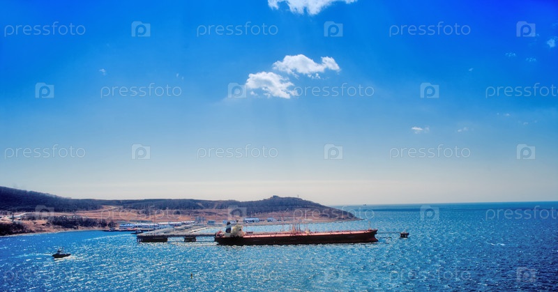 Загрузка танкера нефтью в морском порту