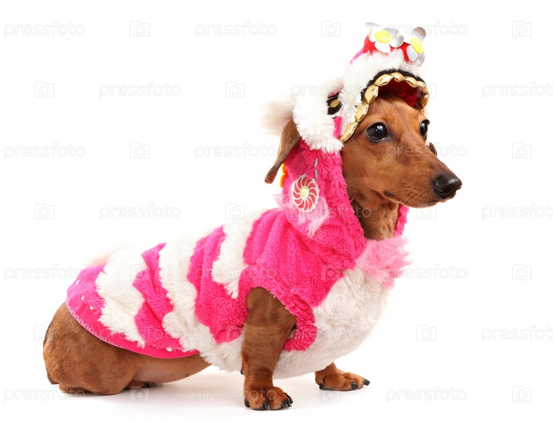 Такса в китайском новогоднем костюме