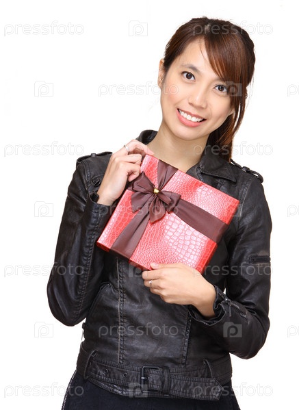 Азиатская женщина, держащая подарок