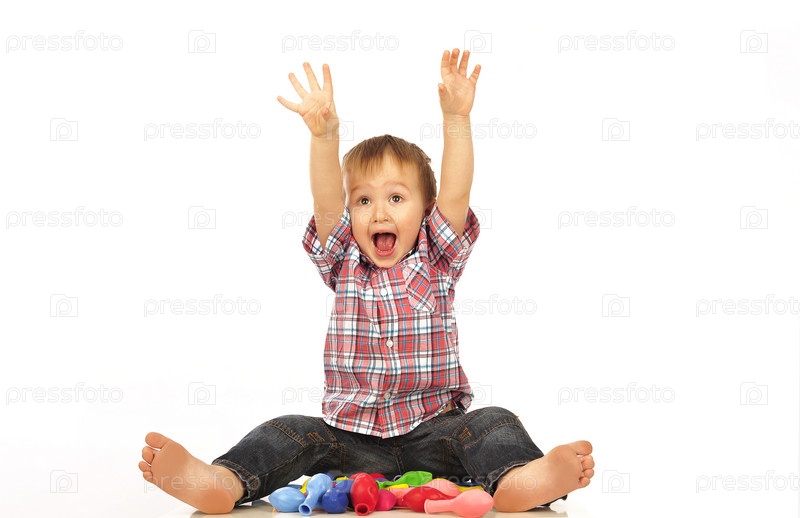 Маленький мальчик с кучей сдутых шариков