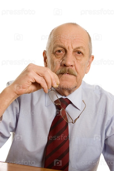 Пожилой человек на белом фоне