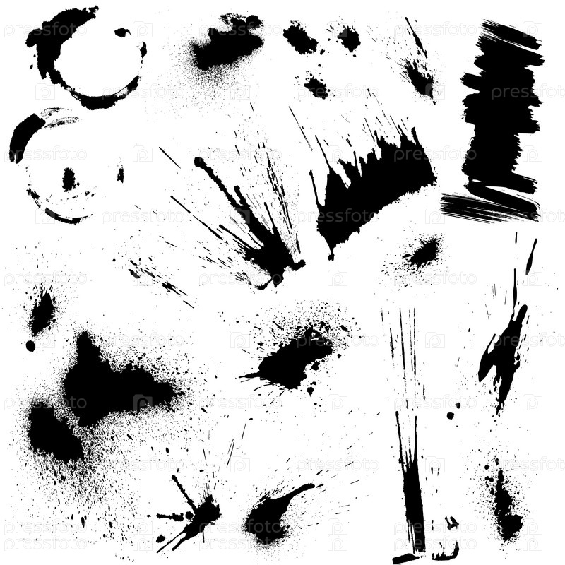 Черные пятна и брызги краски. Абстрактные элементы для дизайна в стиле гранж