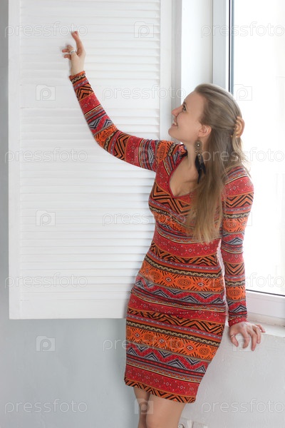 Женщина открывает пластиковое окно