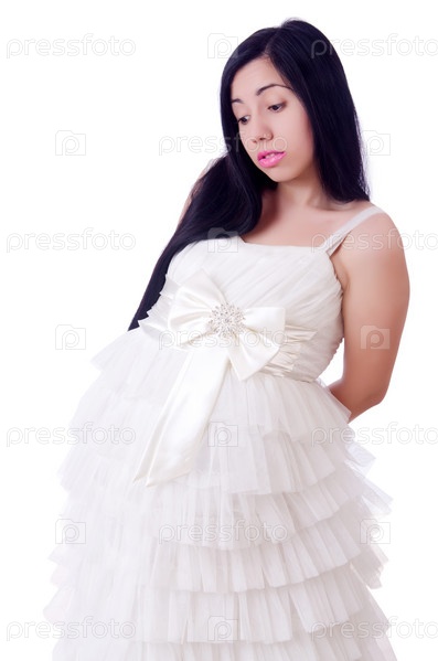 Беременная женщина в свадебном платье