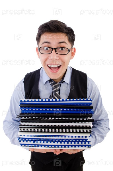 Человек с большим количеством папок