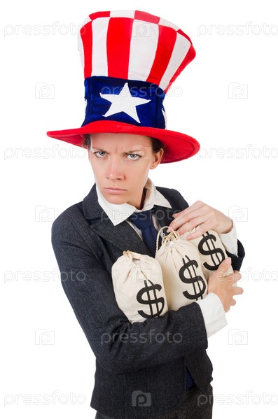 Деловая женщина с мешками денег