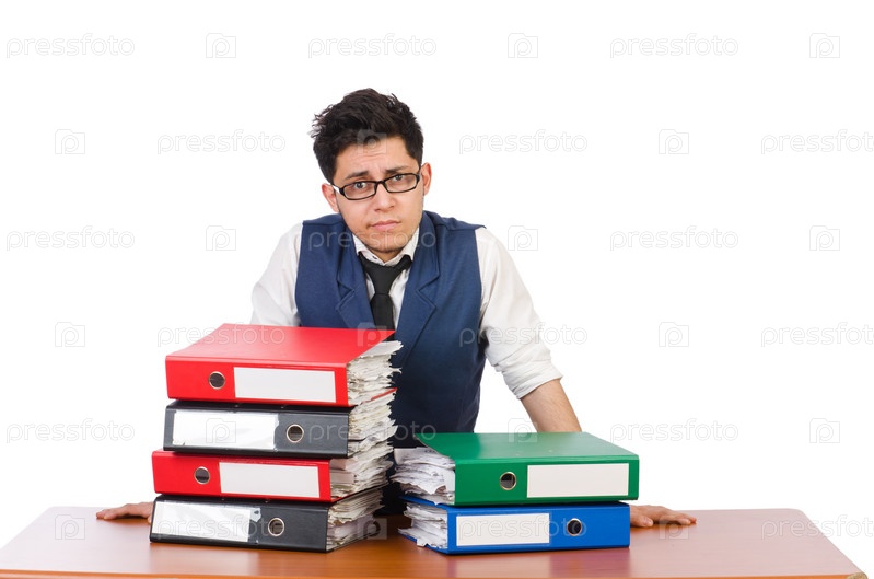 Человек с большим количеством папок