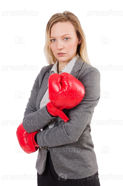 Деловая женщина в боксерских перчатках