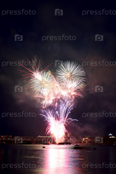 Красочный фейерверк над водой
