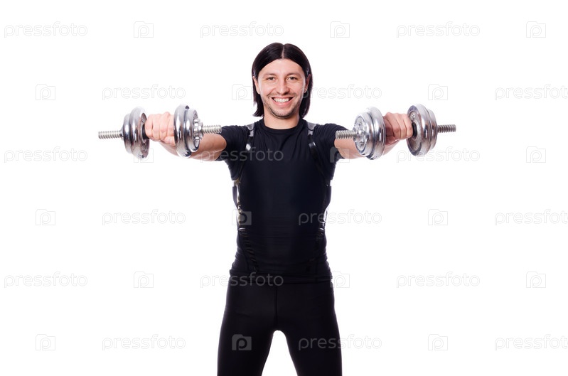 Мужчина делает упражнения с гантелями