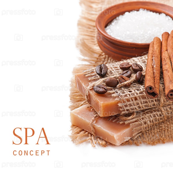 Натуральное мыло и соль, изолированные на белом фоне