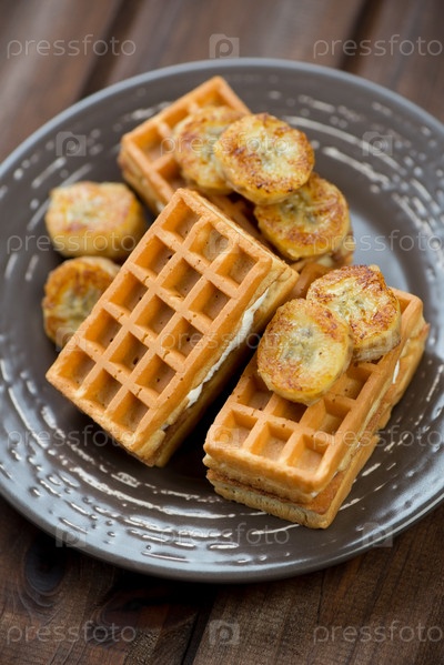 Вафли с ломтиками жареных бананов