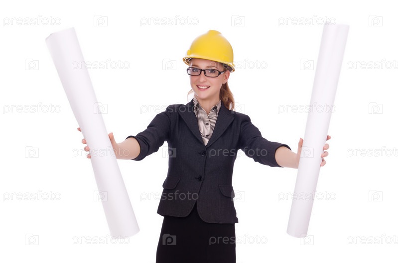 Молодой архитектор с чертежами