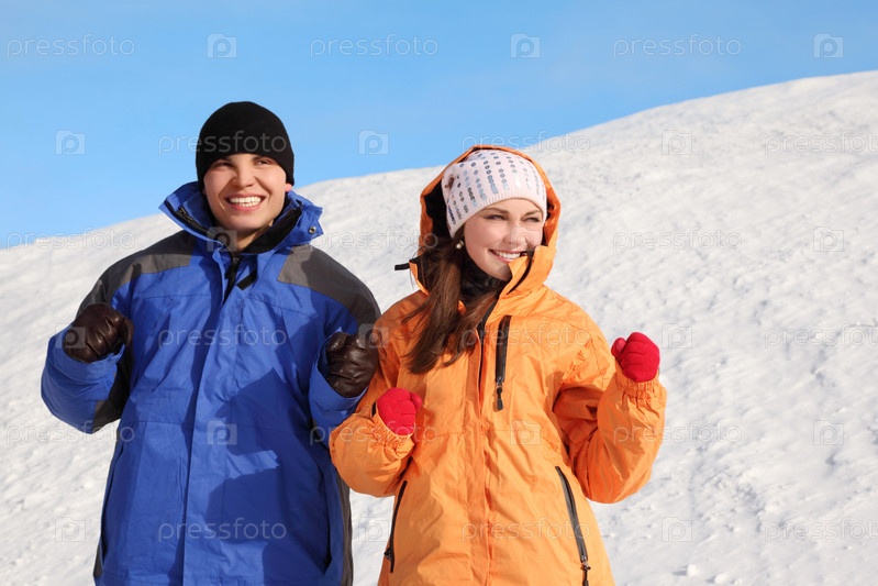 Молодой человек и девушка на зимней прогулке