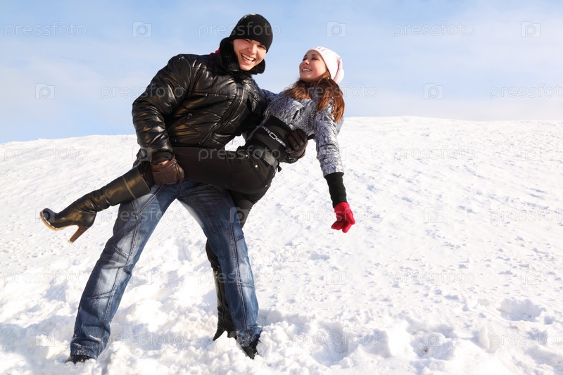 Молодой человек и девушка на зимней прогулке