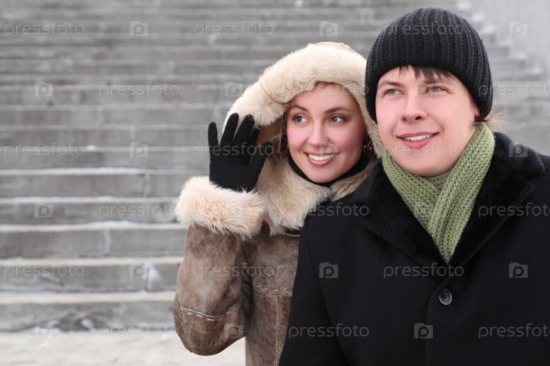 Молодой человек и девушка на зимней прогулке