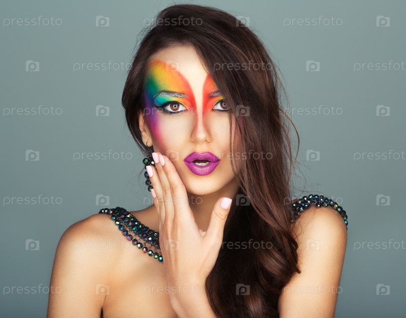 Девушка с разноцветным макияжем