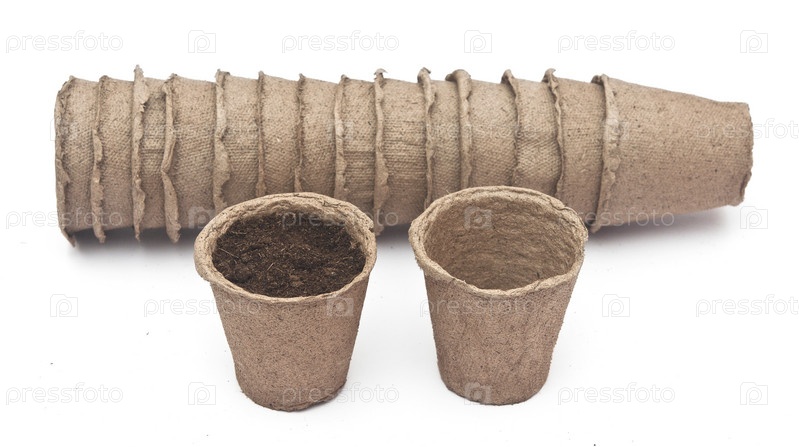 Торфяные горшочки для выращивания рассады, изолированные на белом фоне