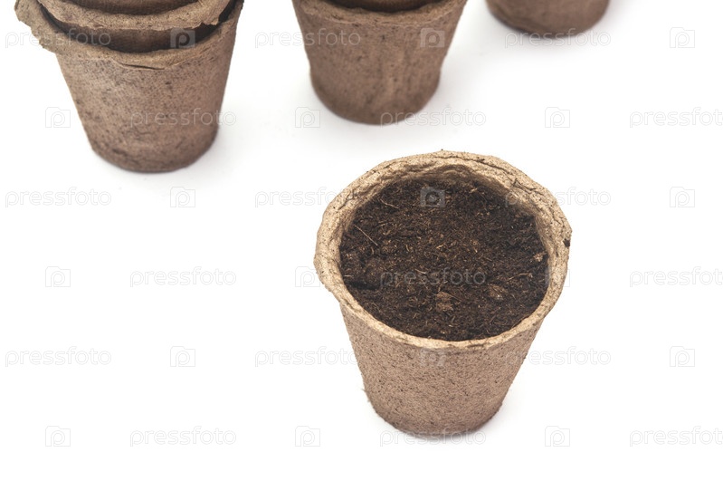 Торфяные горшочки для выращивания рассады, изолированные на белом фоне