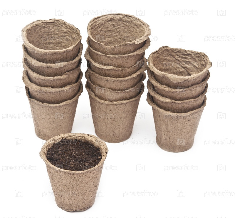 Торфяные горшочки для выращивания рассады, изолированные на белом фоне