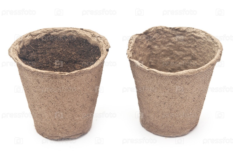 Торфяные горшочки для выращивания рассады, изолированные на белом фоне