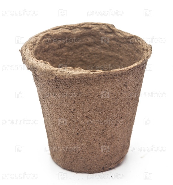 Торфяные горшочки для выращивания рассады, изолированные на белом фоне