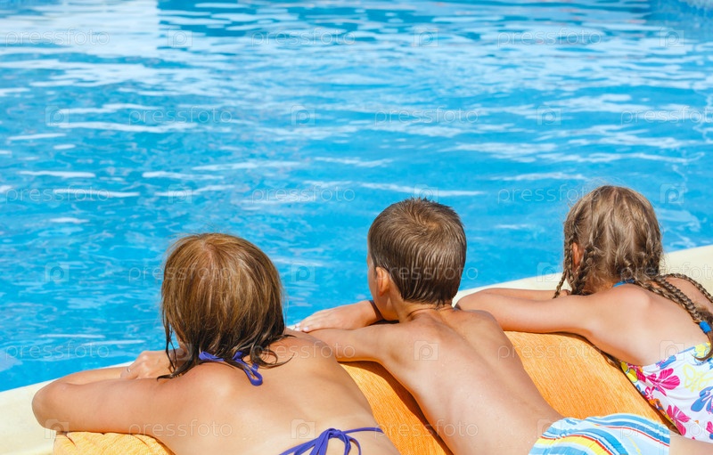 Мать с детьми возле бассейна