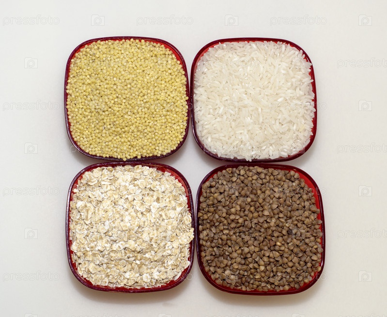 Крупы в красных плошках