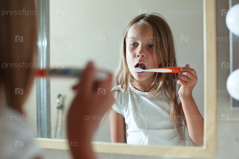 Девочка чистит зубы
